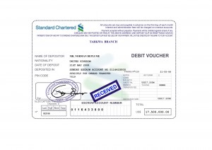 However, Attach is a copy of the Statement of Account and Debit Voucher which you are request to provide to the Bank Head office of Standard Chartered Bank of Ghana and as soon as you receive my email,kindly forward this two document to them immediately and most important,i will like to have a copy of your Identification for Reference purpose and also i will scan mine and sent to you later today.