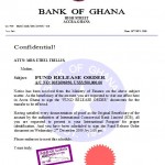 According to the directives of the Bank of Ghana, you are required to be in Ghana on 2nd December, 2009 to endorse the Fund Release Order document to facilitate the transfer of the fund to your account abroad.